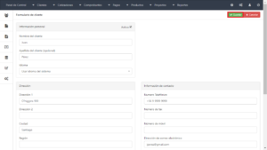 - Ingresar la información respectiva del cliente (“Nombre del cliente” y “Dirección de correo electrónico” son obligatorios) y hacer click en el botón “Guardar”