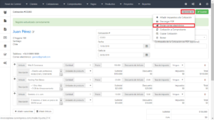 - Hacer click en el botón “Crear Cotización”